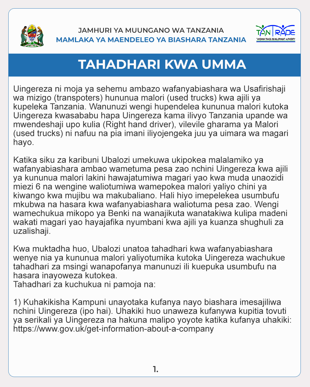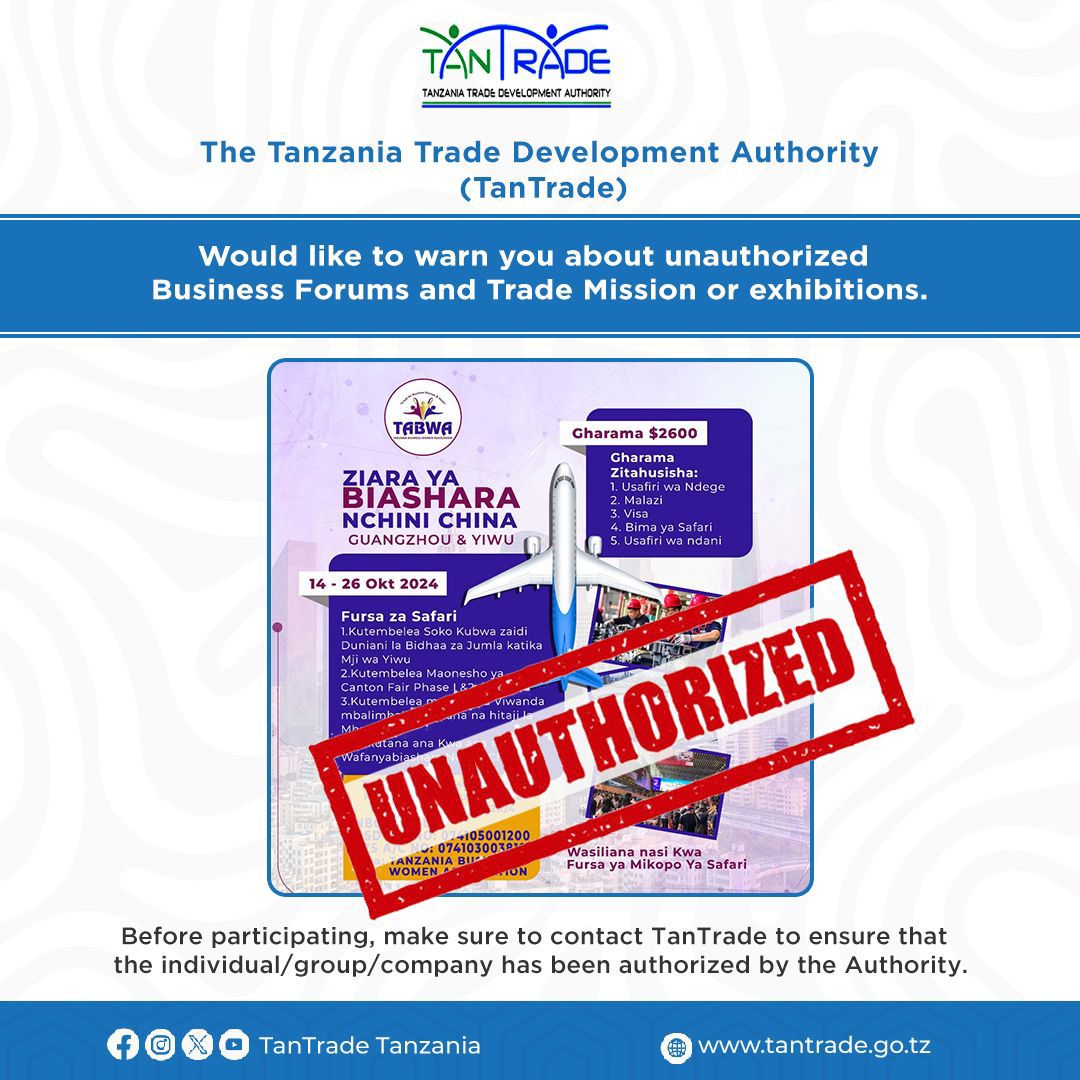 TAARIFA KWA UMMA KUANDAA MAONESHO, MAKONGAMANO NA MISAFARA YA KIBIASHARA NDANI NA NJE YA TANZANIA