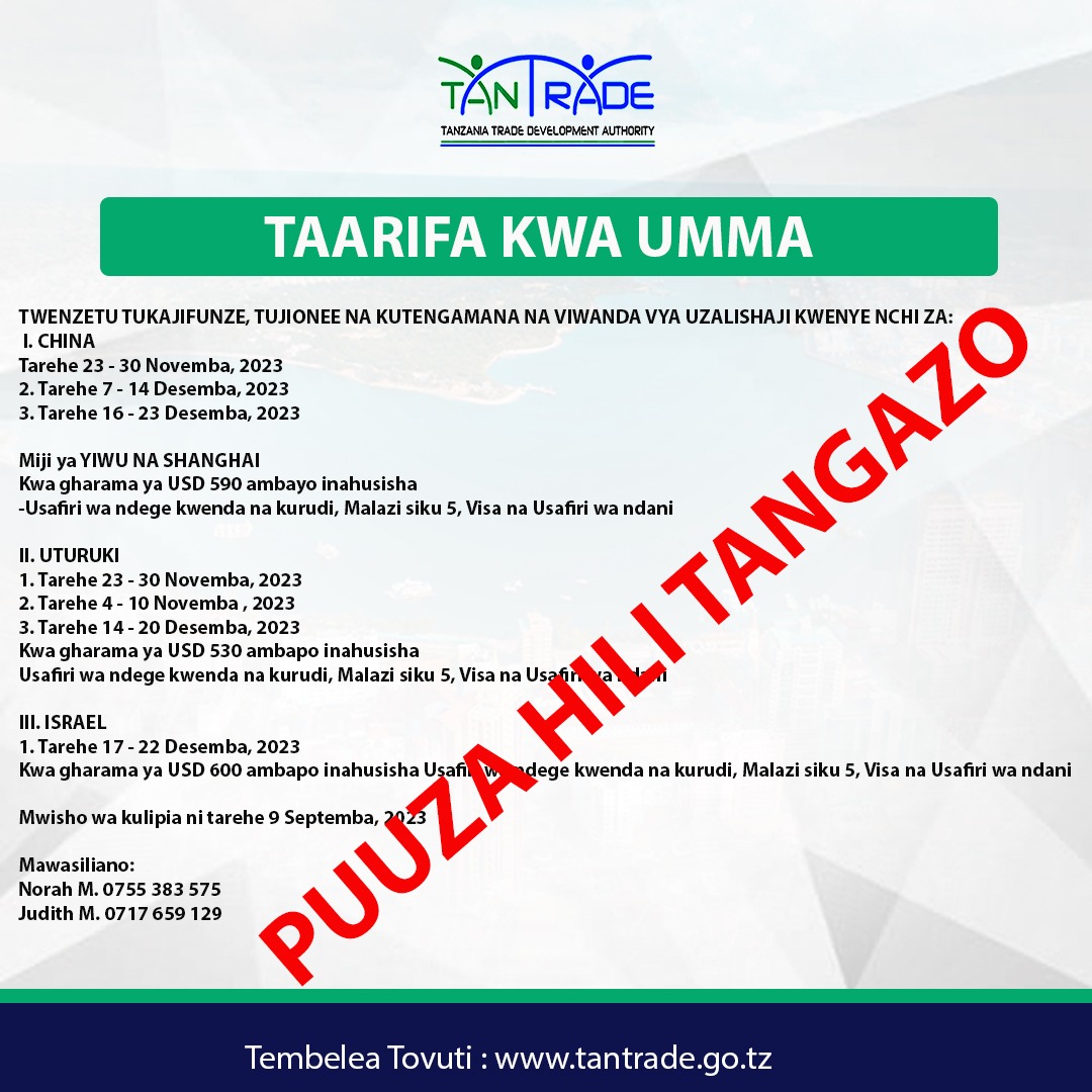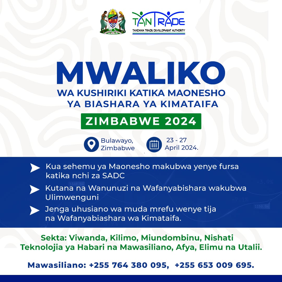 Mwaliko wa kushiriki katika maonesho ya biashara ya Kitaifa Zimbabwe 2024